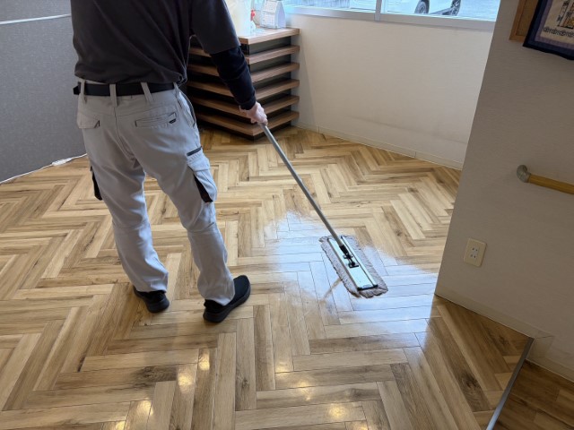 その為、清掃ではありますが、「より磨き上げる」ような気持ちでの床洗浄→ワックス塗布作業となりました。